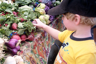 We spend this sunny Colorado morning counting beets, listing colors and differentiating between tomatoes and apples. It has become an opportunity to introduce my little sponge to the concept of whole foods as well as integrating basic learning in a fun and colorful environment, all the while allowing me to pick up locally grown produce for the upcoming week.